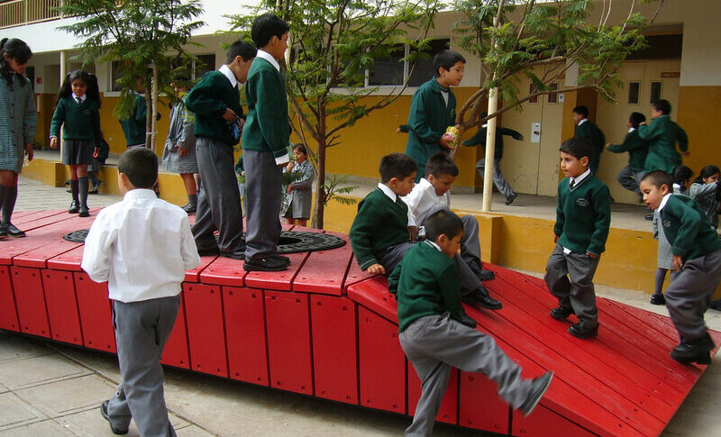 Destaca la creación de un lugar de encuentro para los niños, que constituye un respiro para la escuela, no sólo por su materialidad, sino también por la incorporación de un área verde que contrarresta con la dureza predominante del entorno general. Asimismo, se rescató la dimensión simbólica de la “isla”, precisamente como un espacio donde la presencia de los árboles como elementos vivos, promoverá la acción de la comunidad escolar, quienes podrán participar en la mantención de esa área verde.