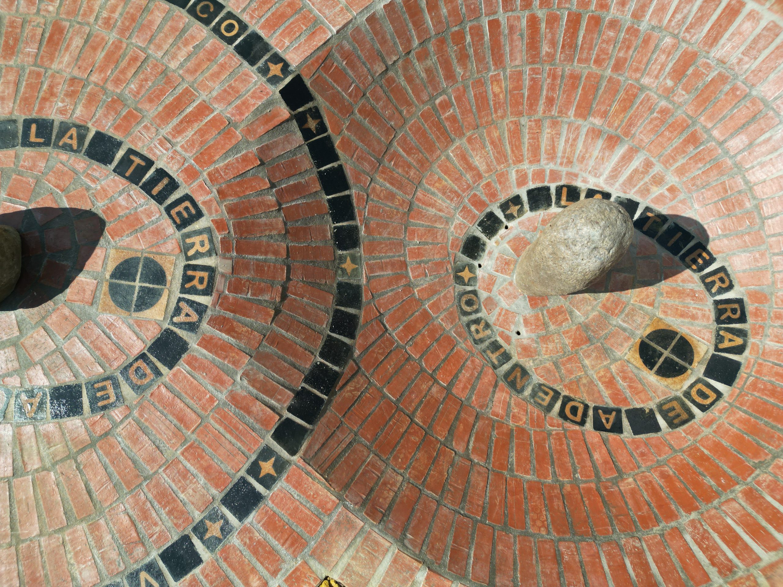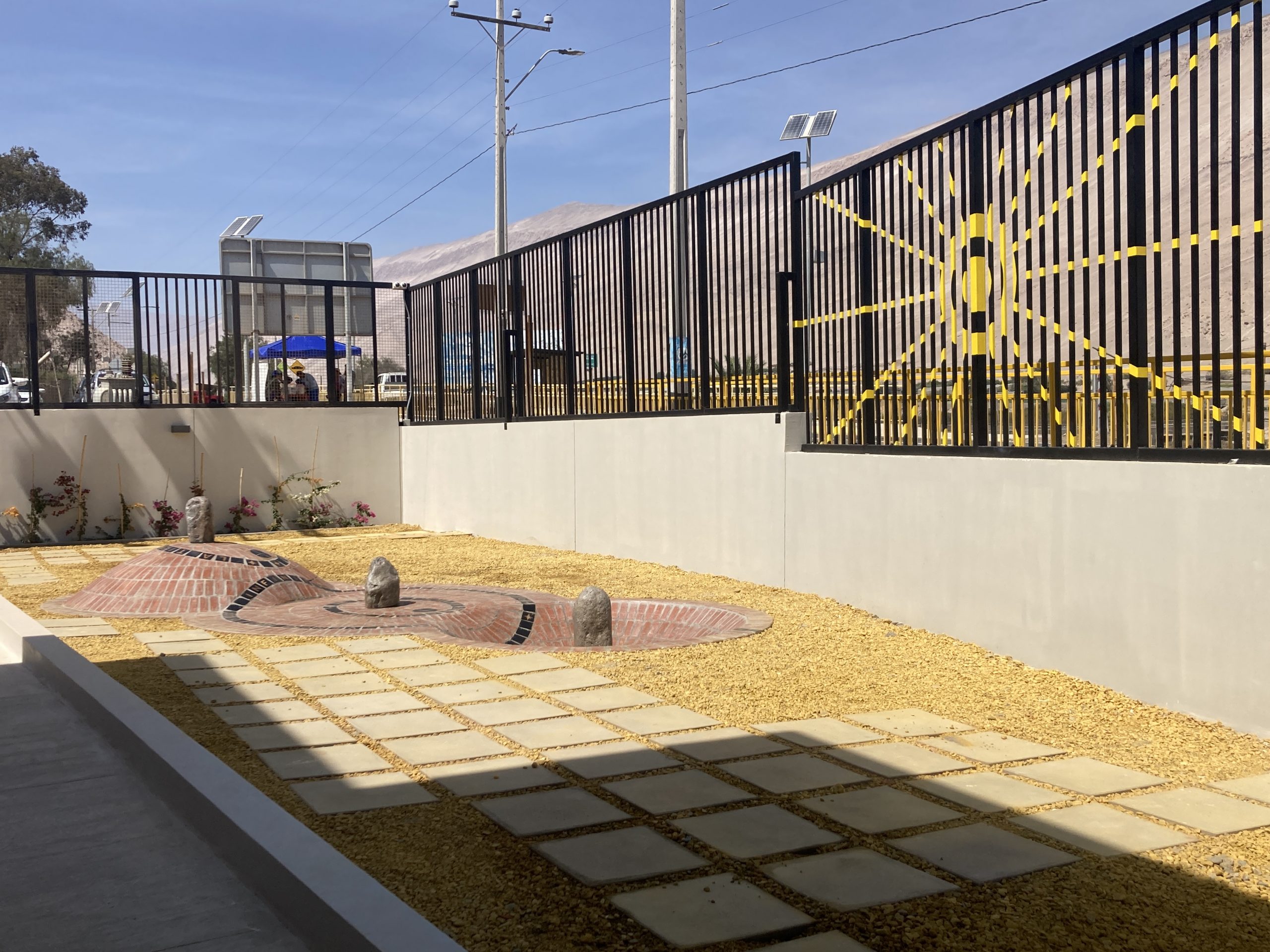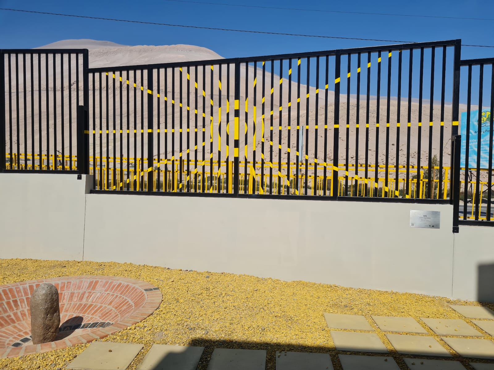 La propuesta nos recuerda los fenómenos solares y astronómicos, y tiene como objetivo sensibilizar la observación hacia el cielo a modo de acercar la comprensión de nuestro planeta. La intervención considera un diseño cinético, pintando tres círculos entrelazados en algunos sectores de los perfiles rectangulares de la reja, además de tres óvalos interconectados entre sí, construidos en hormigón armado con pavimento de ladrillo y tres rocas graníticas, emplazados en el suelo al interior del colegio, que corresponde a los estados espirituales del Aymara: Arajpacha, Akapacha y Manquepacha. La sombra de las piedras, calzan en unos círculos de cobre incorporados en el diseño, durante el equinoccio de otoño y primavera y solsticio de verano e invierno.